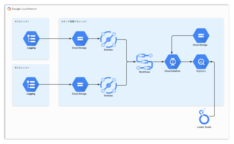 ① 各プロジェクトにて Cloud Logging にログを出力することを前提としています。